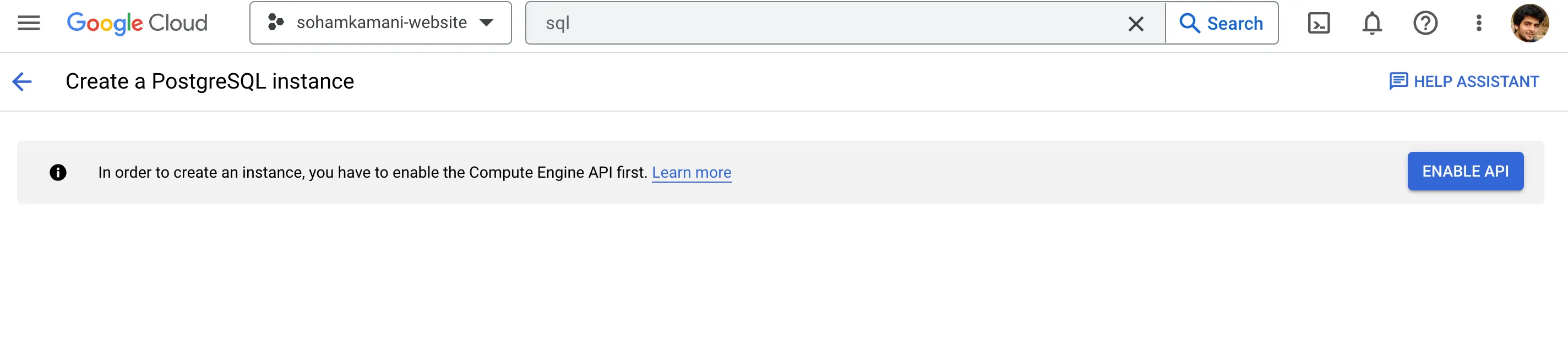 To create a new instance, navigate to the Cloud SQL page on your GCP console.